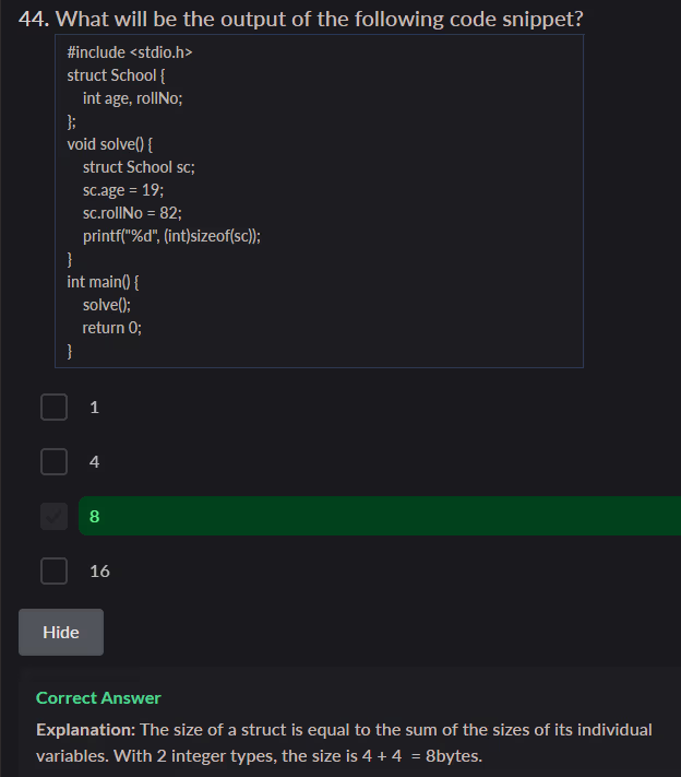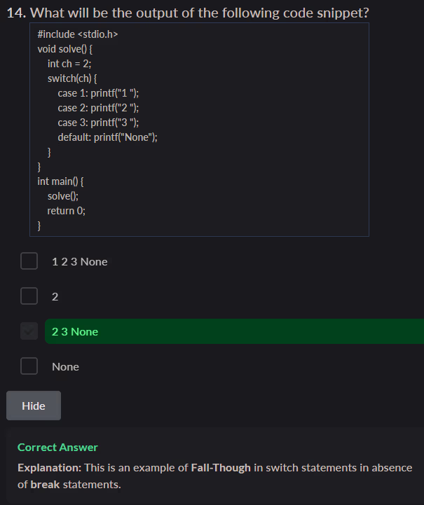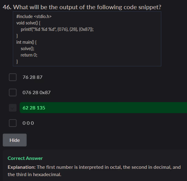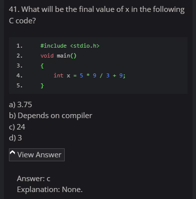 - Answer: c