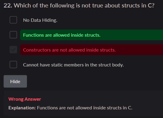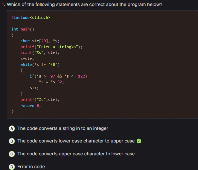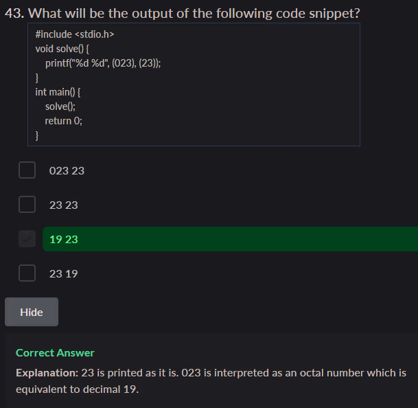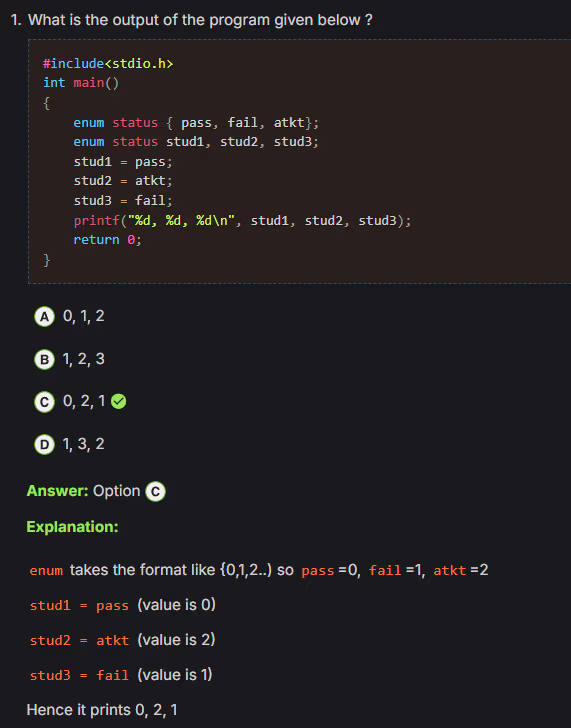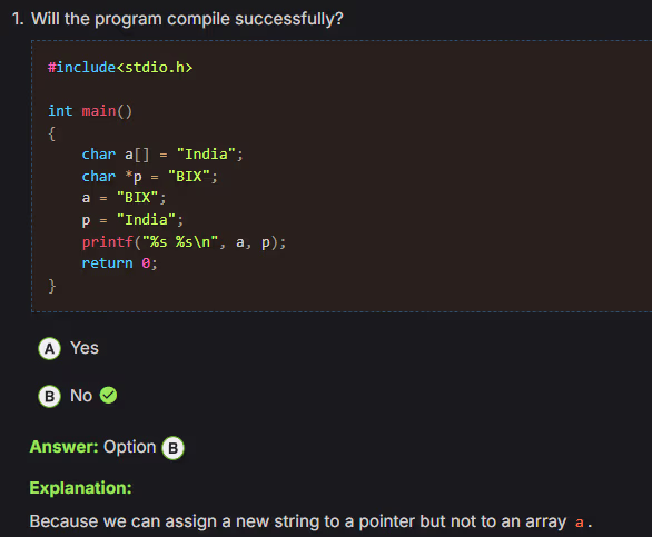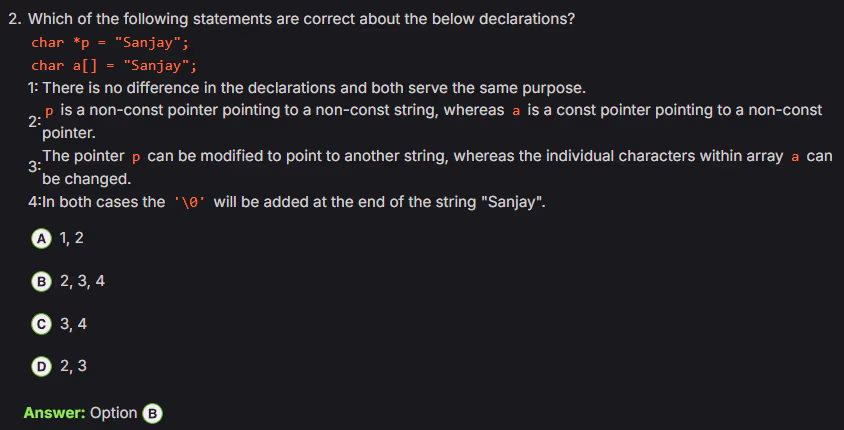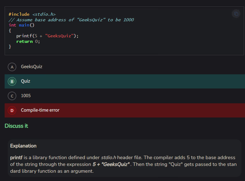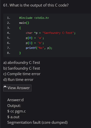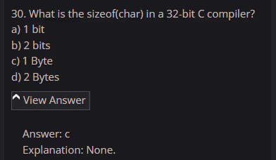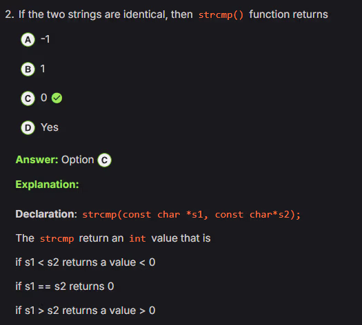 unsignedtype is compared with asignedtype in C, thesignedoperand is implicitly converted to theunsignedtype before the comparison is made - String literals in C are typically stored in read-only memory. This means their contents are not intended to be changed during program execution