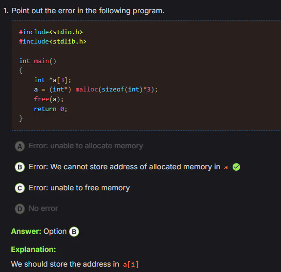 - WRONG! a pointer variable needs to point to an object not to a literal