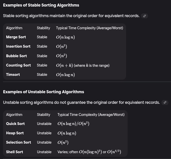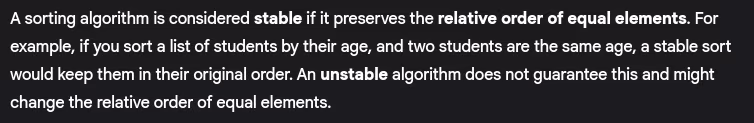 - What’s the difference between stable and unstable sorting algorithms?