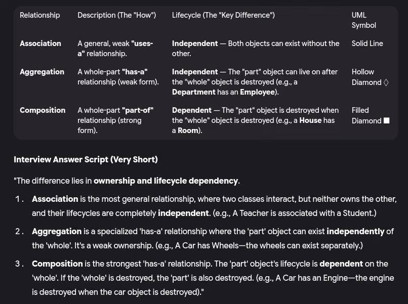 - Difference between association, aggregation and composition
