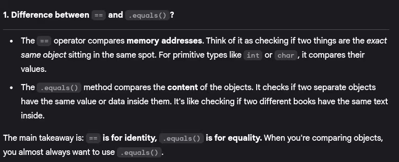 - Difference between == and .equals()?