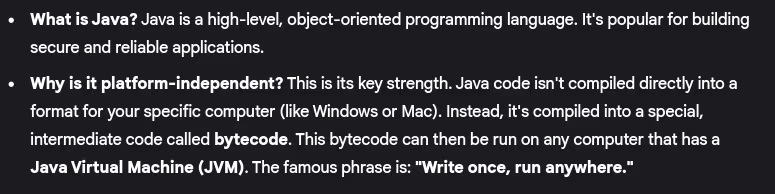 - What is Java and why is it platform-independent?