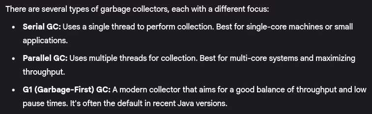 - Types of garbage collectors