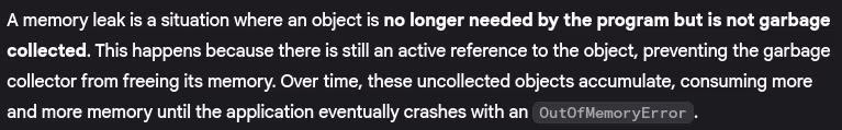 - What is memory leak in Java?