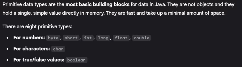 - What are primitive data types in Java?