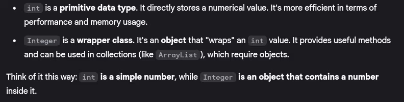 - Difference between int and Integer in Java