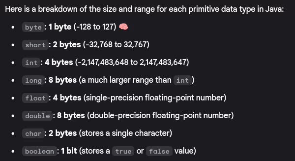 - What are the size ranges for different primitive types?