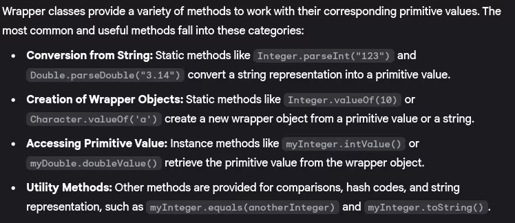 - What are the methods provided by wrapper classes?