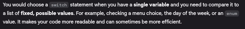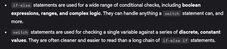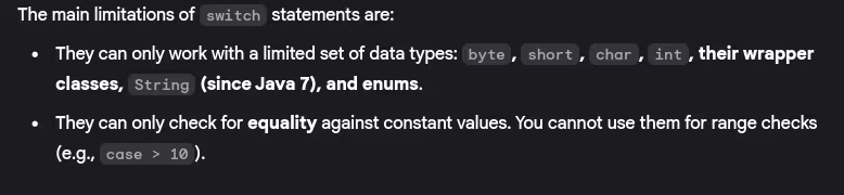 - What are the limitations of switch statements?