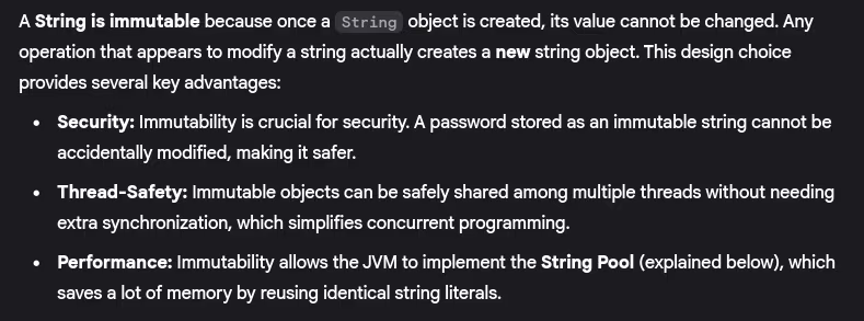 - Why are Strings immutable in Java? What are the advantages?