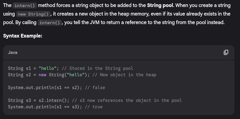 - Explain string interning in Java.