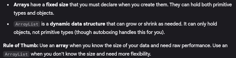 - What’s the difference between arrays and ArrayList?