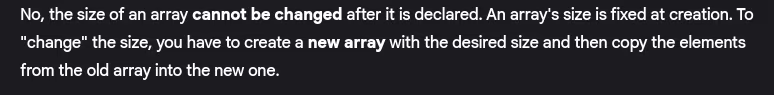 - Can array size be changed after declaration?