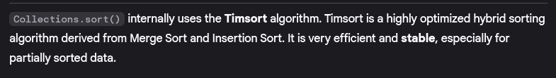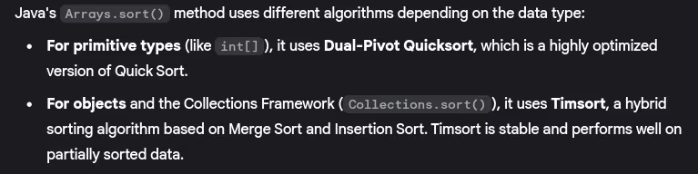 - What sorting algorithms does Java use internally?