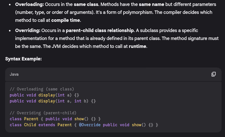 - What’s the difference between method overloading and method overriding?