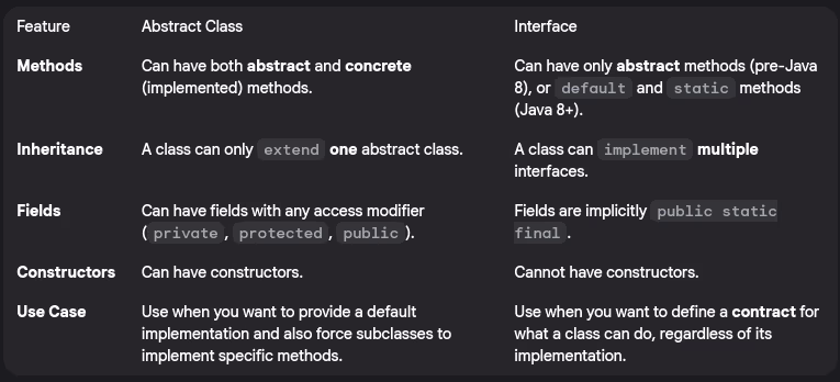 - What’s the difference between abstract classes and interfaces?